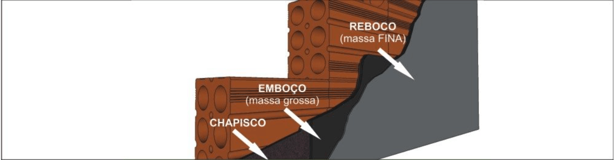 É a camada externa das paredes, que cobre a alvenaria. Composto pelo chapisco, emboço e reboco.